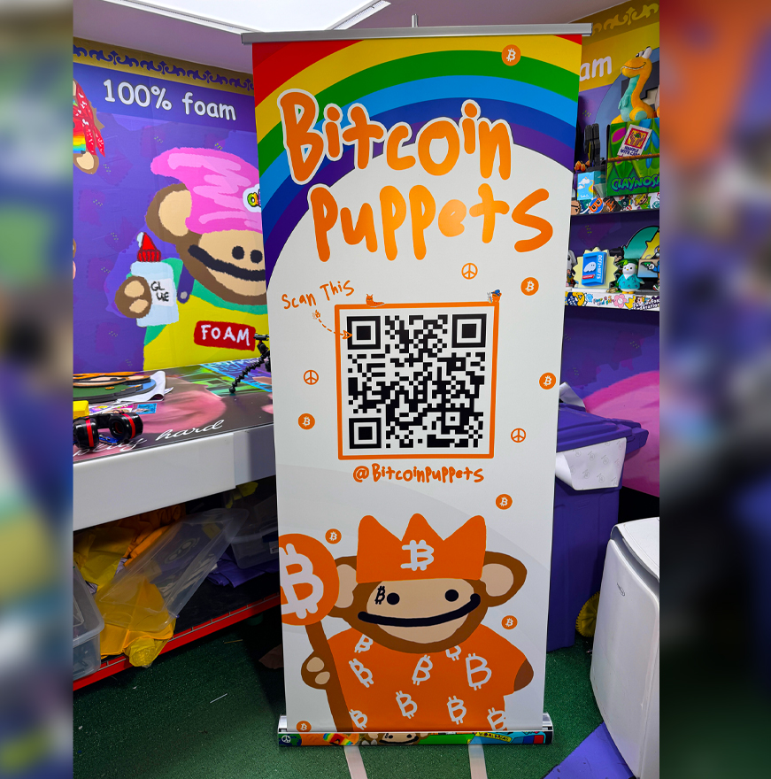 dominate the floor at your next NFT conference or meetup. premium 33x80" roll-up banners printed on smooth matte vinyl. includes portable carrying case
